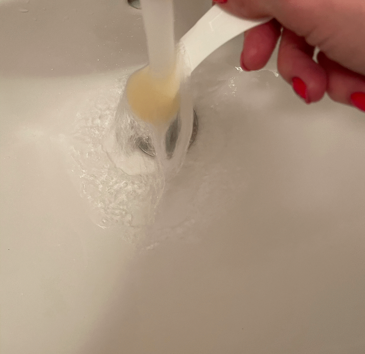 Finally, rinse the sugaring spatula under hot water to melt the sugar and dry the spatula for the next use.